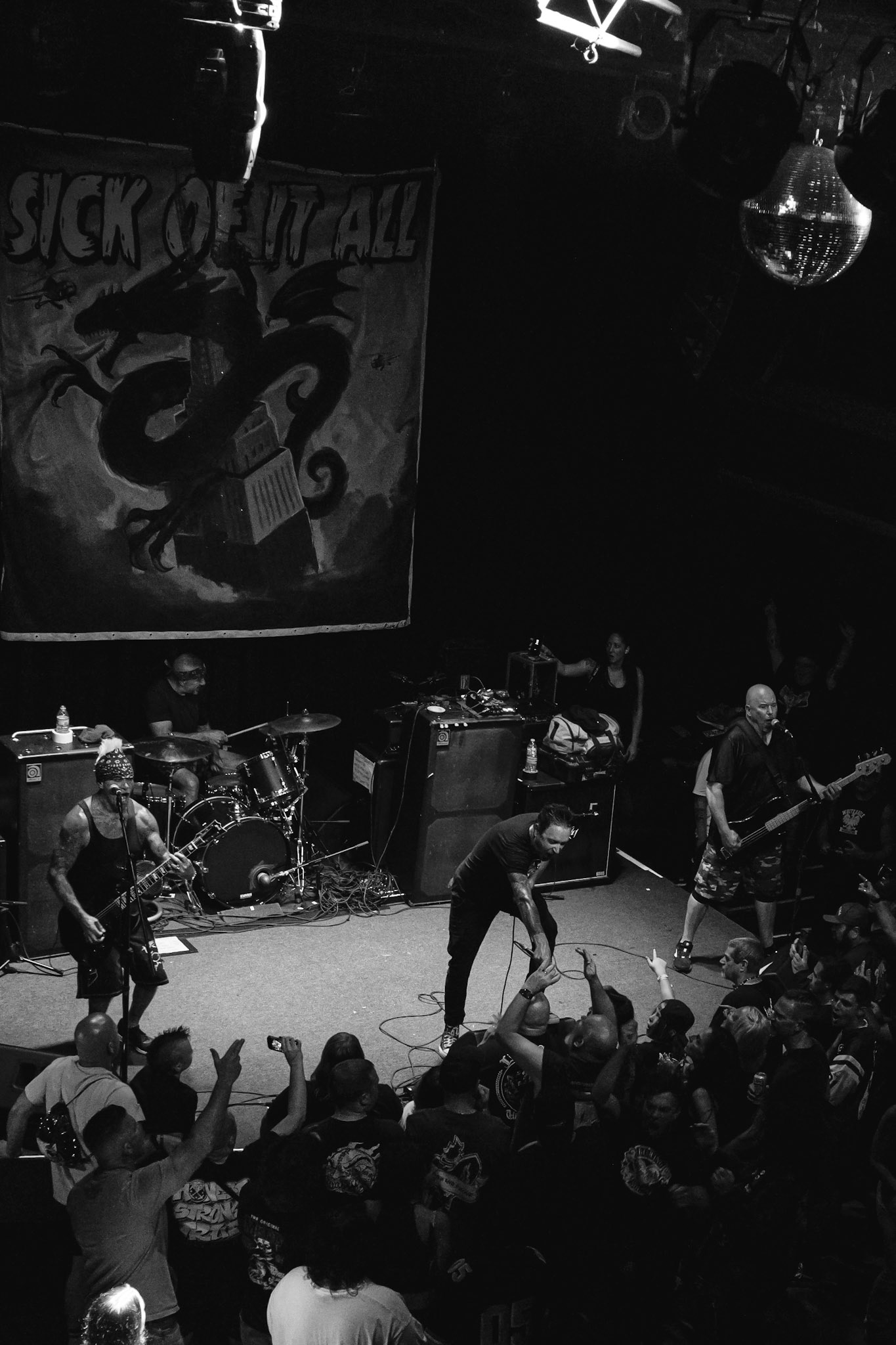 next on was the band Sick of it All. they performed a career spanning set, playing songs from their beginning to their most recent material. They opened with the song "Injustice system" from the 1989 album "blood, Sweat & No Tears" and the crowd went wild. the crowd sang along to all their favorite songs. there wasn't a body not moving through the entire set. Sick of it all Ripped through Nineteen songs in about an hour, closing out their set with "Step Down" from the album "scratch the Surface." Sick Of it all is on a little break after the August 27th show in NYC, but I'm sure it won't be long until they are back at it again. check out their website here. you won't regret it, I've been listening to them for the past 20 years or so.